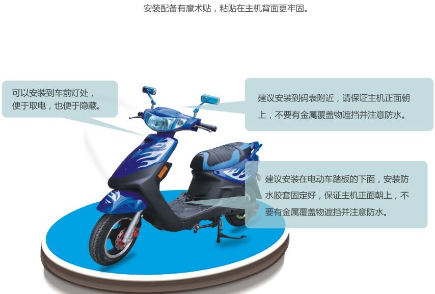 主要應(yīng)用于摩托車、電動車、電瓶車的實時監(jiān)控、行程記錄、軌跡回放、警報提醒、車輛信息管理等。